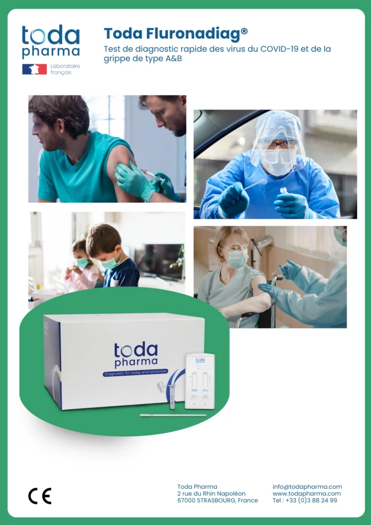 Toda Fluronadiag est un test de diagnostic rapide pour la détection qualitative des antigènes du COVID-19 et des virus de la grippe de type A&B dans des échantillons d’écouvillons nasopharyngés.