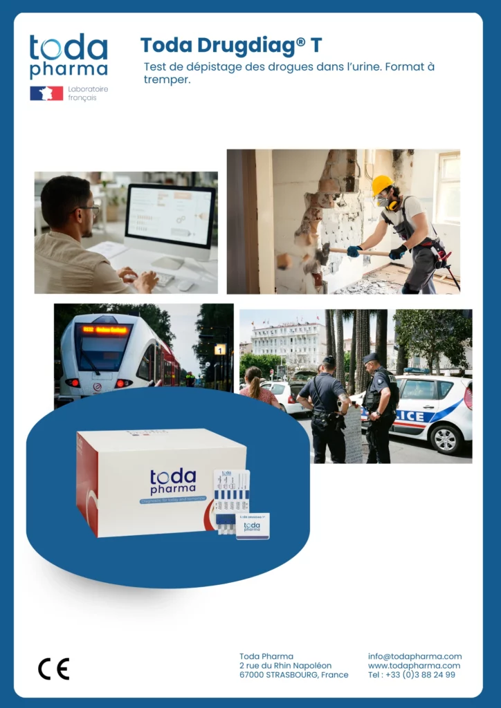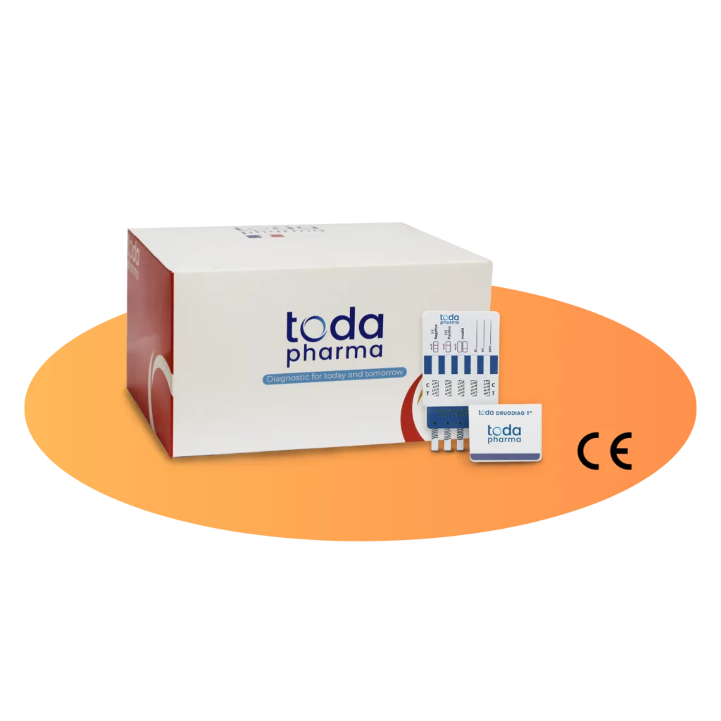 Le test au format cassette à tremper Toda Drugdiag® T permet la détection qualitative des drogues et de leurs principaux métabolites dans l’urine.