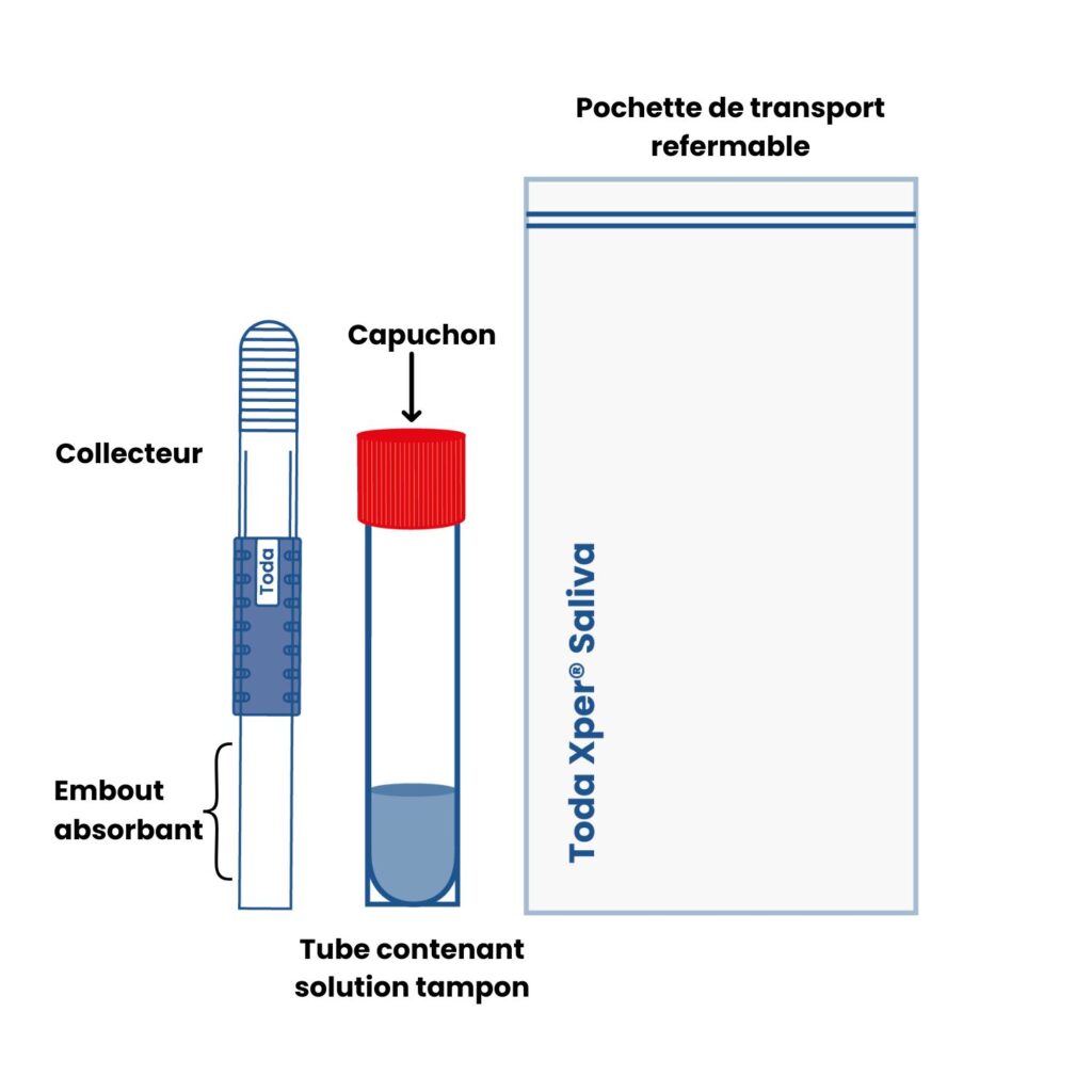 En parallèle, le kit Toda Xper® Saliva propose une approche différente : il s’agit d’un dispositif complet de prélèvement destiné spécifiquement à la contre-expertise en laboratoire. Il comprend un préleveur stérile et un tube sécurisé, permettant de réaliser un nouvel échantillonnage dans des conditions optimales de traçabilité et d’intégrité. Ces deux solutions répondent ainsi à des besoins variés, selon que l’on souhaite réutiliser un échantillon existant ou réaliser un nouveau prélèvement sécurisé.